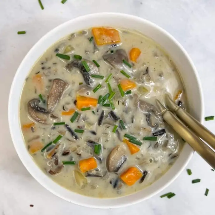 I love cozying up in a warm blanket and enjoy a comforting bowl of soup during the winter months. Today, I am sharing creamy mushroom soup without heavy cream. Instead using coconut cream to make it vegan and dairy-free. This soup is easy to make and comes together in under 30 minutes. My other favorite soups are creamy tomato soup and broccoli cheddar soup.