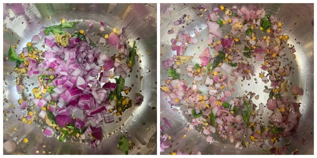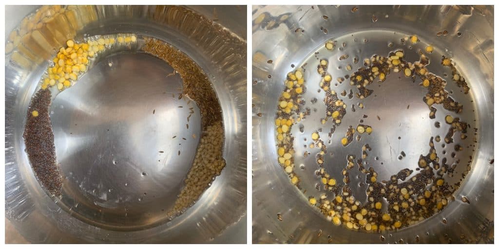 - To begin with the Instant Pot, press SAUTE mode and heat oil or ghee. Add mustard seeds, cumin seeds (jeera), urad dal, and chana dal. Saute until the dals turn light golden brown.