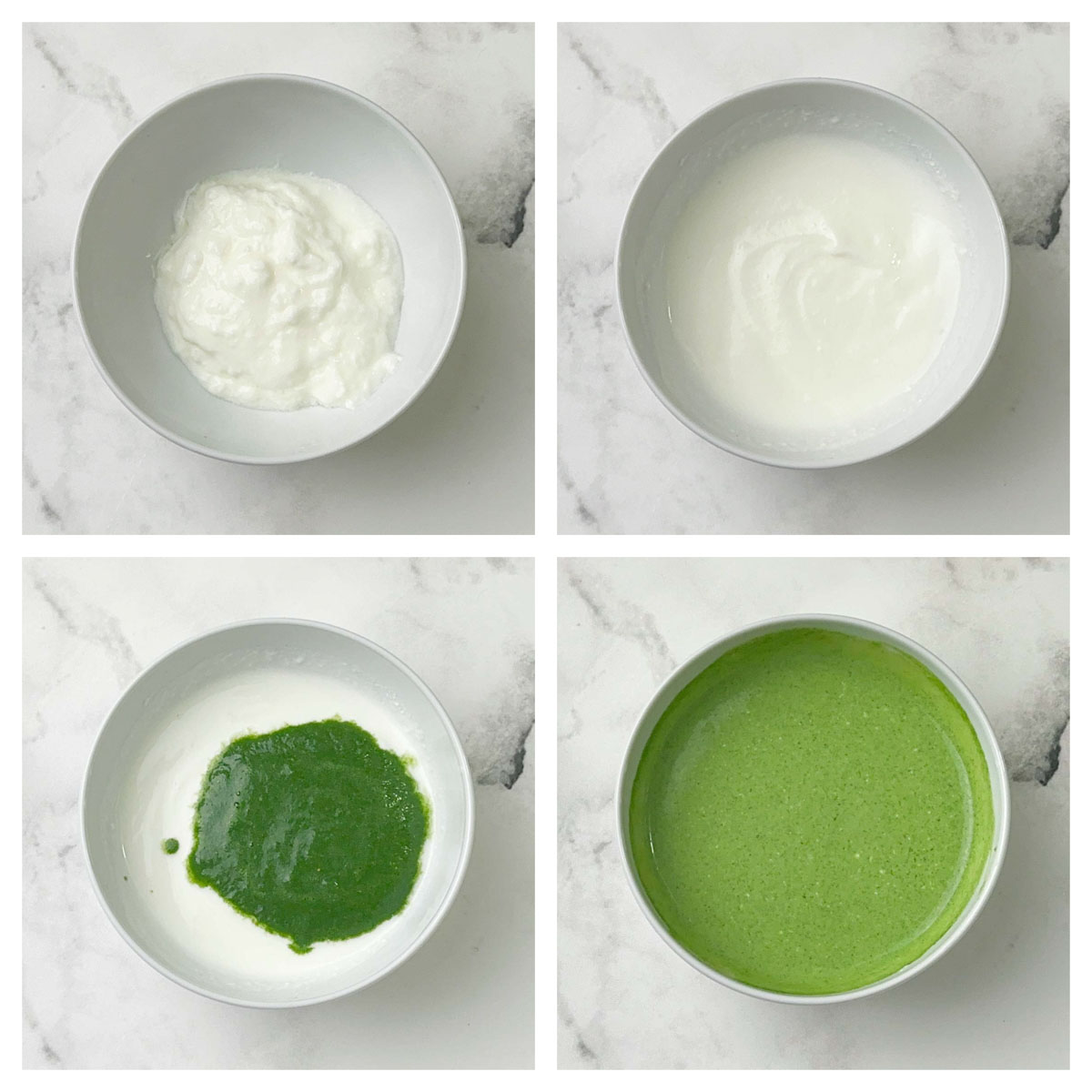 - Then add the blended chutney to the yogurt. Mix well.